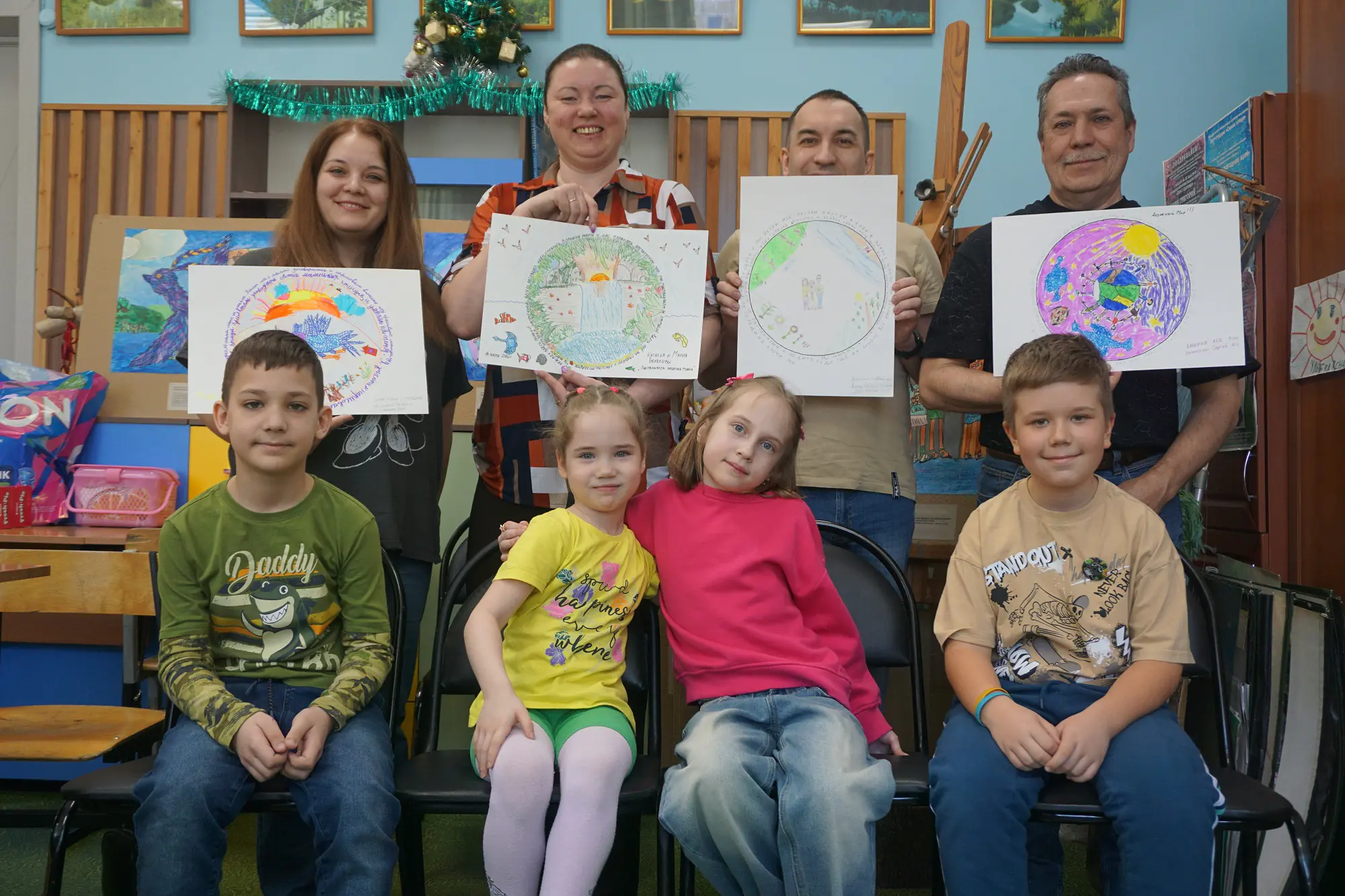 Результатами семейной арт-сессии стали творческие семейные мандалы: «Дружный мир», «Подглядываем закатные чудеса», «Наши любимые места» и «Синяя птица с птенцами».