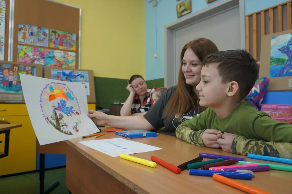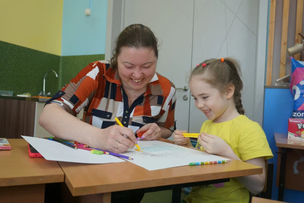 Детям и их родителям предлагалось создать мандалу с помощью маркеров, фломастеров и цветных карандашей. Работать предстояло в парах: родитель – ребенок.