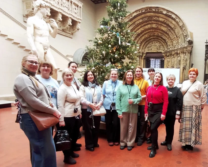 Традиционно в канун Нового года 13 декабря участники Клуба «Желтая пятница» и корпоративной программы «ART профи» Центра детей и юношества (руководитель Светлана Кожохина) совершили путешествие в предпраздничную столицу, чтобы стать гостями Государственного музея изобразительных искусств им. А.С. Пушкина и окунуться в актуальную декабрьскую тему «Рождественская история».