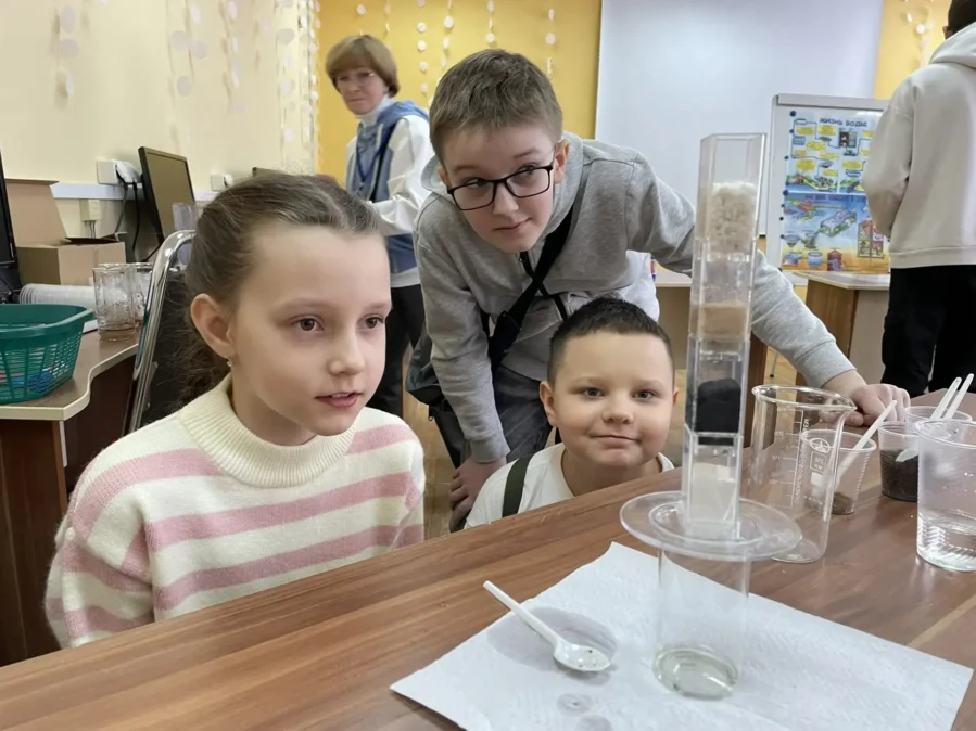 Участники разделились на команды и отправились путешествовать по станциям квеста, каждая из которых была посвящена разным аспектам науки – экологии, химии, физики и биологии. Здесь дети вместе с родителями узнавали секреты водного цикла, исследовали свойства веществ, проводили химические реакции и искали решения практических задач.