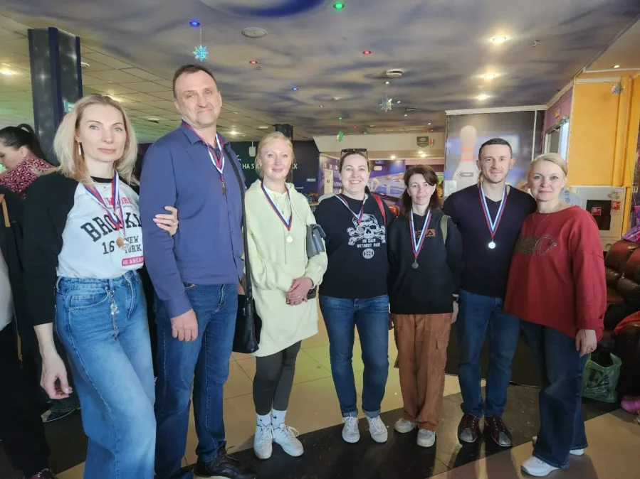 Час игры пролетел быстро – в поисках лучшей траектории катания шара, в громких криках по случаю страйка, в шутках и общем болении друг за друга. В зачет шло общее количество очков, набранных командой за 10 раундов (фреймов), в каждом из которых 12 бросков делали 6 игроков.