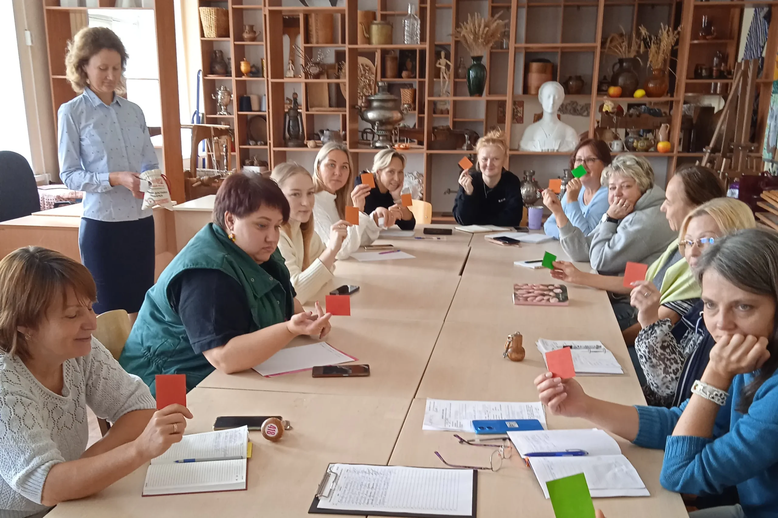 В ходе встречи педагоги активно обсуждали вопросы, касающиеся трудовых функций педагога дополнительного образования, реализации дополнительных общеобразовательных программ и пополнили свой педагогический арсенал новыми интересными приемами и идеями.