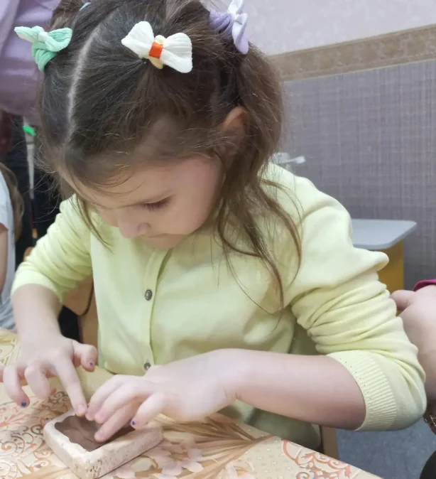 Не случайно Ярославль называют столицей изразцов. Нам есть, чем гордиться, а историкам – что изучать. Вот и дошкольники вместе с родителями тоже рассматривали на встрече разные виды изразцов: гладкие и рельефные, архитектурные и сувенирные, бело-голубые и раскрашенные в знаменитую ярославскую пятицветку. А еще узнали, как мастера-гончары создавали эти удивительные изделия, и вместе с родителями сделали свой первый глиняный изразец.
